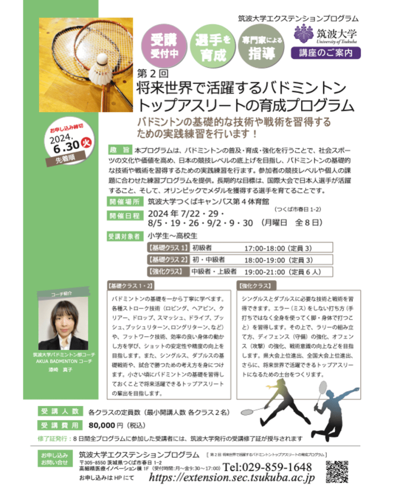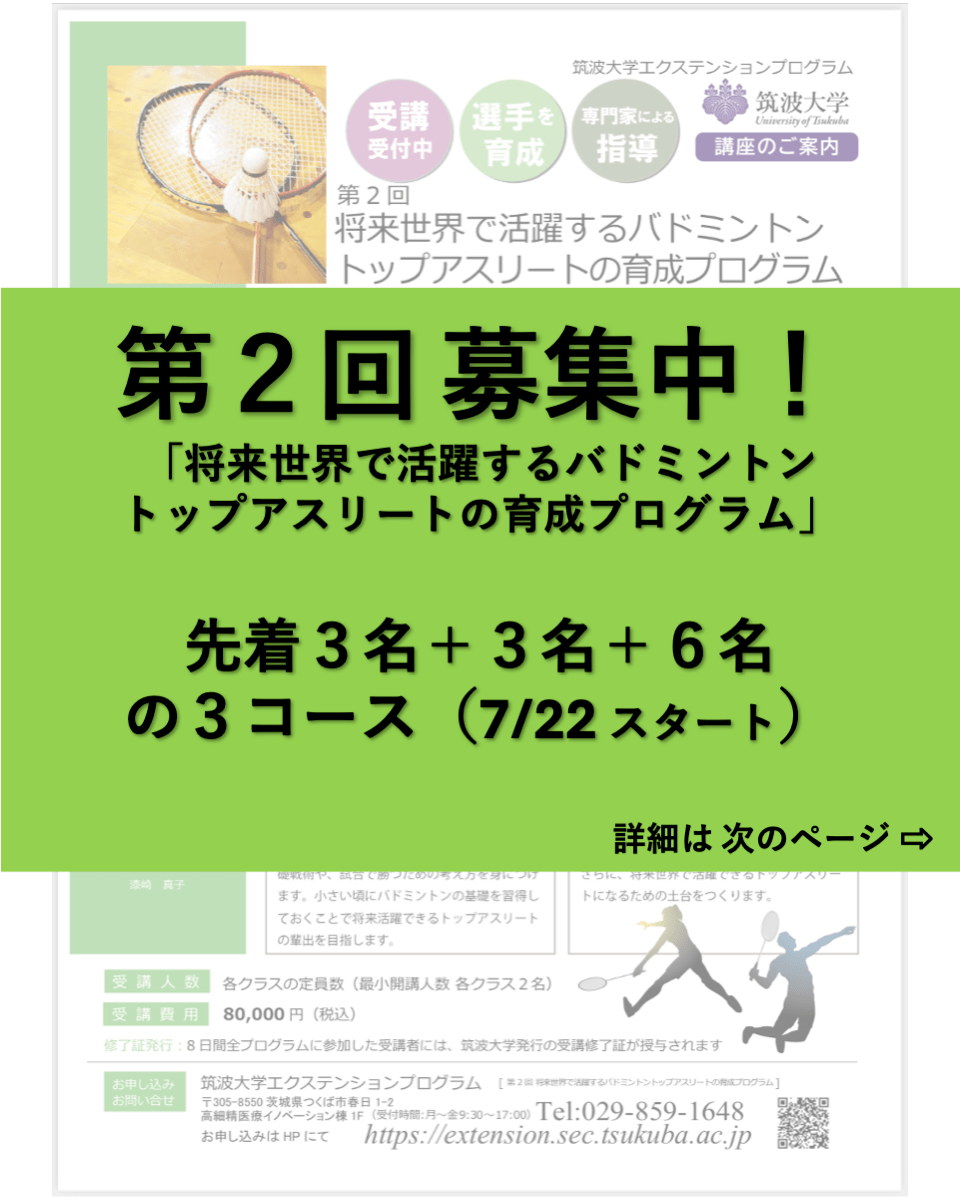 「第2回 将来世界で活躍するバドミントントップアスリートの育成プログラム」