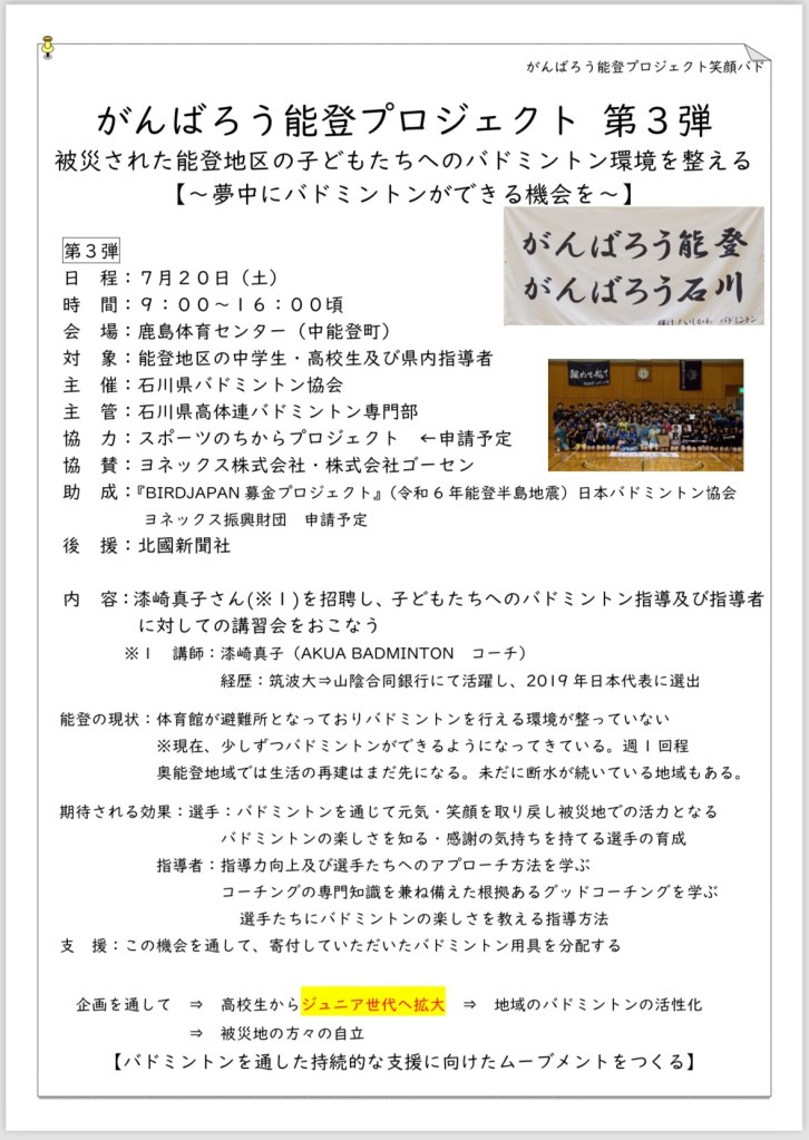 130人の生徒たちが一つの空間でバドミントンをする。何年もバドミントンをしてきましたが、おそらく私にとって初めての経験でした。競技レベルも様々な生徒たちが必死にシャトルを打ったり身体を動かしたり、真剣な眼差しで話を聞く姿はとても印象的でした。地域や世代、文化、環境など、様々な壁を越えて一つになる瞬間を感じることができ、スポーツ/バドミントンの魅力を再確認する1日となりました。鹿島体育センターに集まった皆様にとって楽しく充実した時間、さらに、何か気付きや学びを得た1日となっていれば、とても嬉しく思います。