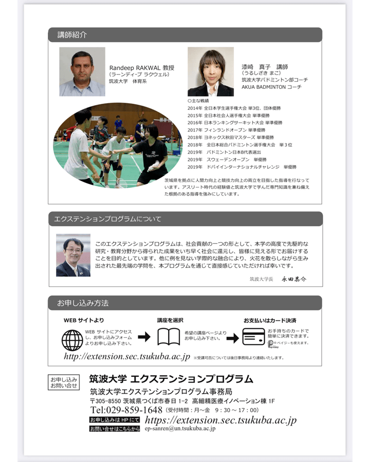 申し込みは筑波大学エクステンションプログラムWebページからお願いします。