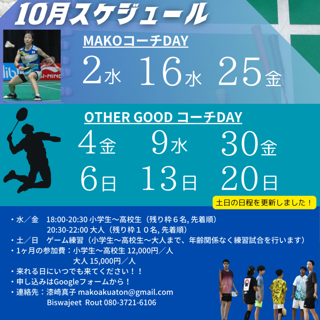 関東を拠点にバドミントン指導を行っています。コーチングスタッフは元実業団選手(日本代表経験あり)、指導では全日本インカレ優勝や日本代表選手輩出などの実績を持つ漆崎真子。筑波大学で培ったコーチングの専門知識を兼ね備えた根拠あるグッドコーチングを武器に、ジュニア指導、部活動指導、社会人指導、シニア指導、レディース指導、パラアスリート指導、留学生指導などオールマイティな指導を提供しています。詳細は右上のメニュー「メッセージ」「コーチの紹介」「AKUA BADMINTONについて」「出張レッスン【料金一覧】」からご覧下さい。