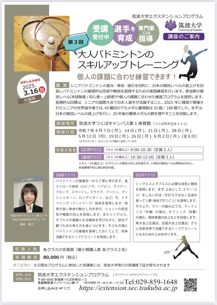 第3回 大人バドミントンのスキルアップトレーニング👇大人コース詳細Webページ