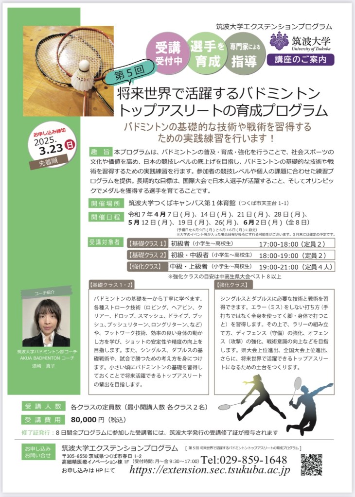 第5回 将来世界で活躍するバドミントントップアスリートの育成プログラム👇子どもコース詳細Webページ