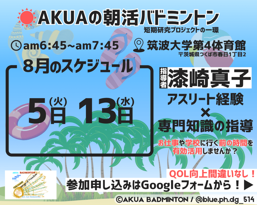 8月の朝活バドミントン申し込みフォーム