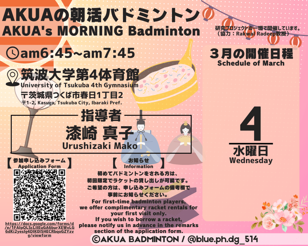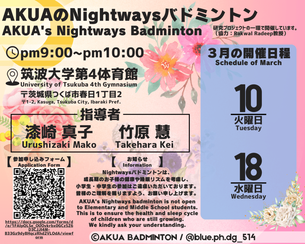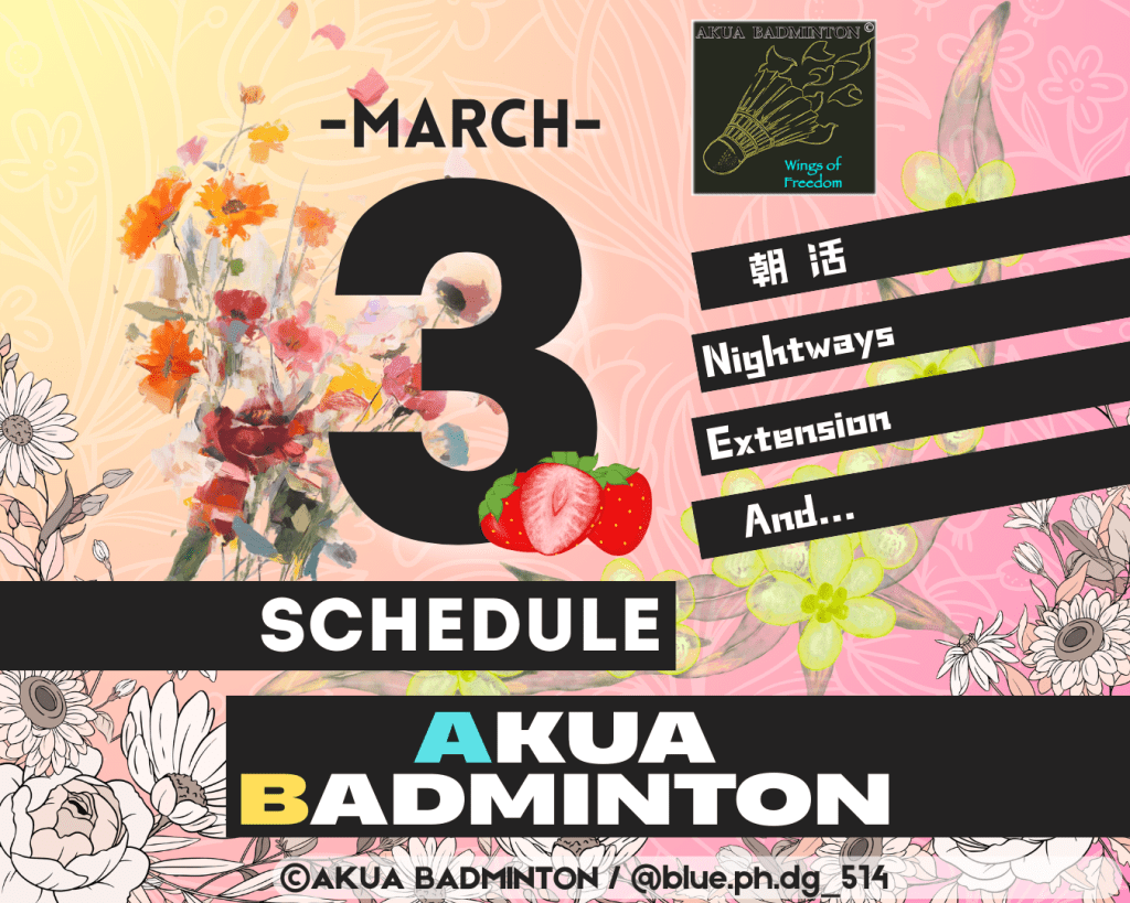 3月の朝活バドミントン申し込みフォーム3月のNightwaysバドミントン申し込みフォーム